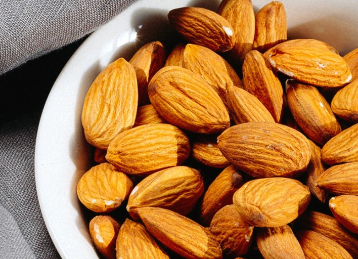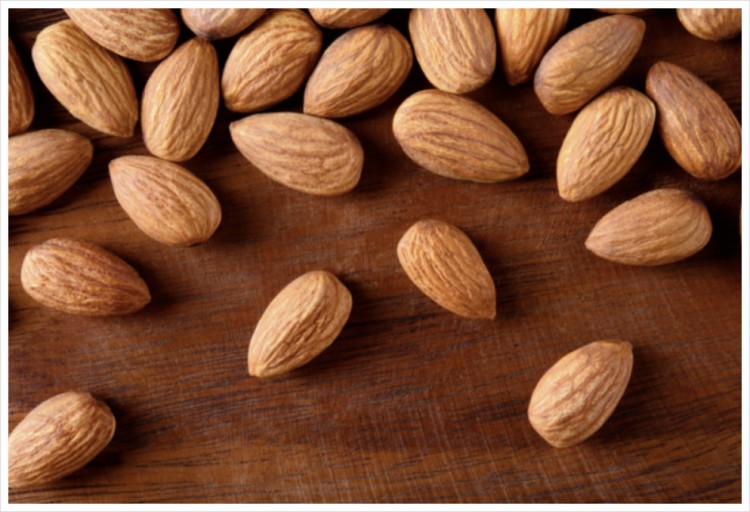 아몬드는 견과류 중에서도 특히나 미네랄과 식이섬유가 많아 지방이나 콜레스테롤 흡수를 줄여주며, 변비 관리 효과가 있어 아몬드 하루 섭취량은 약 23알로 30g 정도로 아몬드 한 줌이고, 30g 안에는 세포를 보호해 피부 건강과 노화 방지에 도움이 되는 비타민 E가 8mg 정도 포함되어 있어요